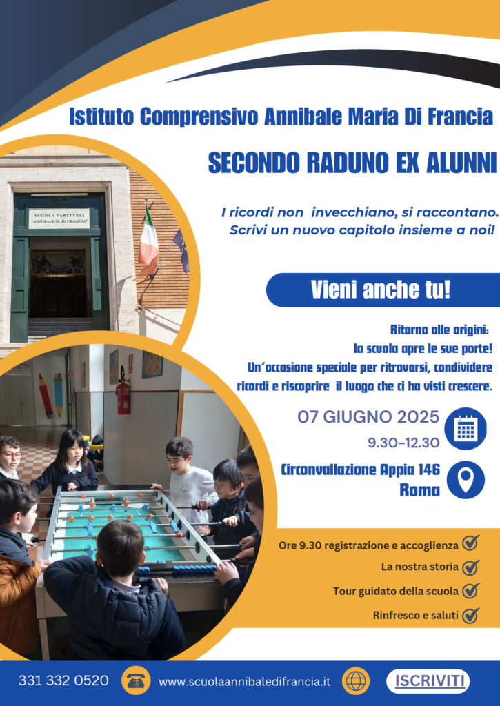 Ti aspettiamo sabato 7 giugno alle ore 9.30 presso Circonvallazione Appia 146 per il raduno degli ex alunni!