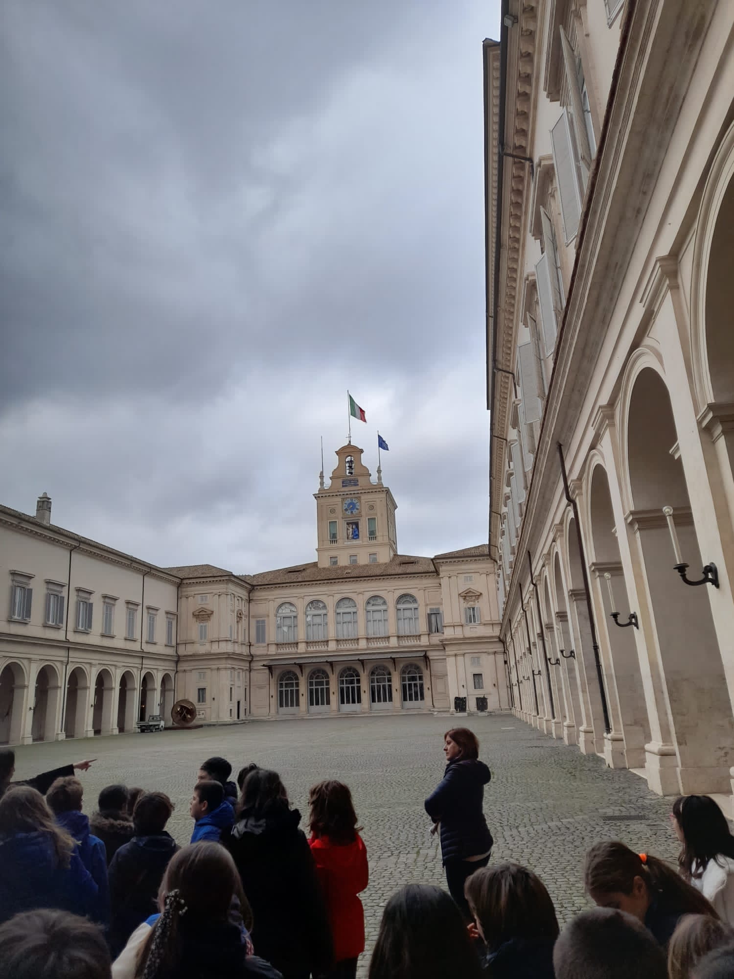 Grazie. E’ questa la prima parola che viene in mente, osservando gli scolari di IV e di V, accompagnati dalle maestre Sara e Arianna, mentre si affollano intorno alle guardie in servizio davanti all’immenso portone del Quirinale. Grazie all’interessamento di un papà della nostra scuola, la visita è stata possibile. L’entusiasmo dei bambini, accolti amorevolmente e guidati professionalmente attraverso i magnifici ambienti del palazzo, era uno spettacolo nello spettacolo. Girare col naso all’insù nelle enormi sale significava ripercorrere la storia d’Italia, e non solo, degli ultimi cinque secoli. Un lavoro non facile, vista l’età degli scolari, compiuto però a perfezione dalle guide del palazzo. I Papi, i Re, i Presidenti della Repubblica: tutti questi importanti personaggi della storia del Quirinale sono stati raccontati con professionale leggerezza, tanto da permettere ai bambini la comprensione e l’acquisizione di nomi e concetti. Un momento particolarmente originale è stato l’esecuzione della canzone “Viva la gente”: le voci squillanti dei bambini hanno eseguito il pezzo nell’immenso salone dei ricevimenti, divertendo anche i personaggi dipinti sulle pareti. Il personale e i Corazzieri presenti, cui avevamo chiesto ovviamente il permesso, erano visibilmente compiaciuti. La spontaneità dei bambini li ha colpiti sicuramente più delle tante opere d’arte che abitualmente li circondano. Una visita davvero interessante in un luogo istituzionale, di cui gli scolari hanno capito perfettamente la funzione e il ruolo. L’entusiasmo era alle stelle, il senso di gioia palpabile.