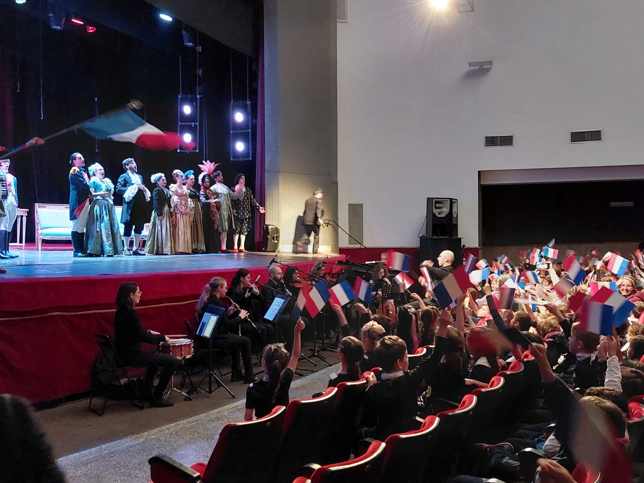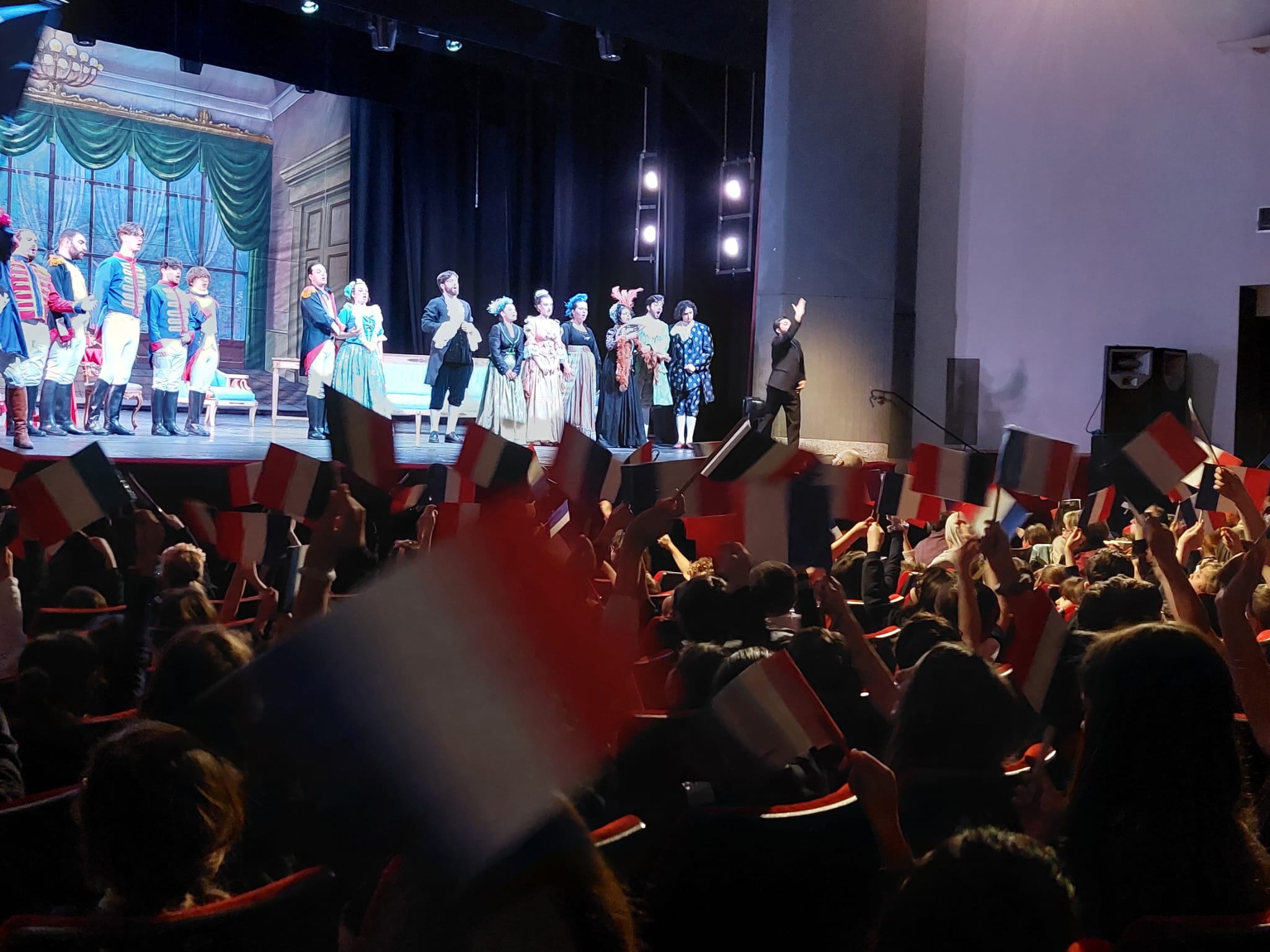 L’ultimo saluto festante e colorato da centinaia di bandierine francesi che sventolano nell’aria a suon di musica, conclude lo spettacolo e la nostra giornata all’opera.