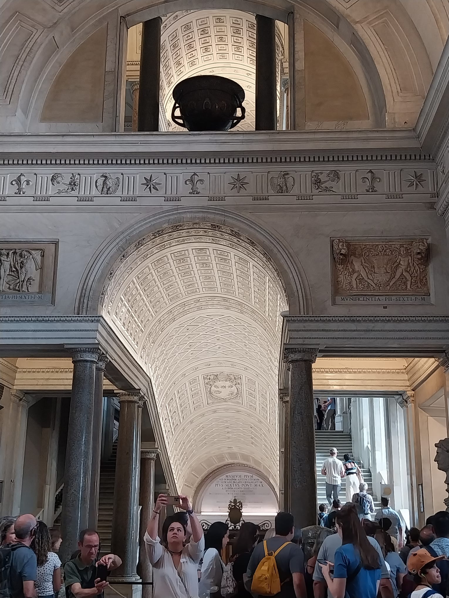 La visita dei Musei vaticani ha il sapore della conquista di una vetta alpina. Bisogna passare alla cassa, esibire la documentazione, ritirare gli auricolari, salire molte scale e passare attraverso un mare di visitatori.