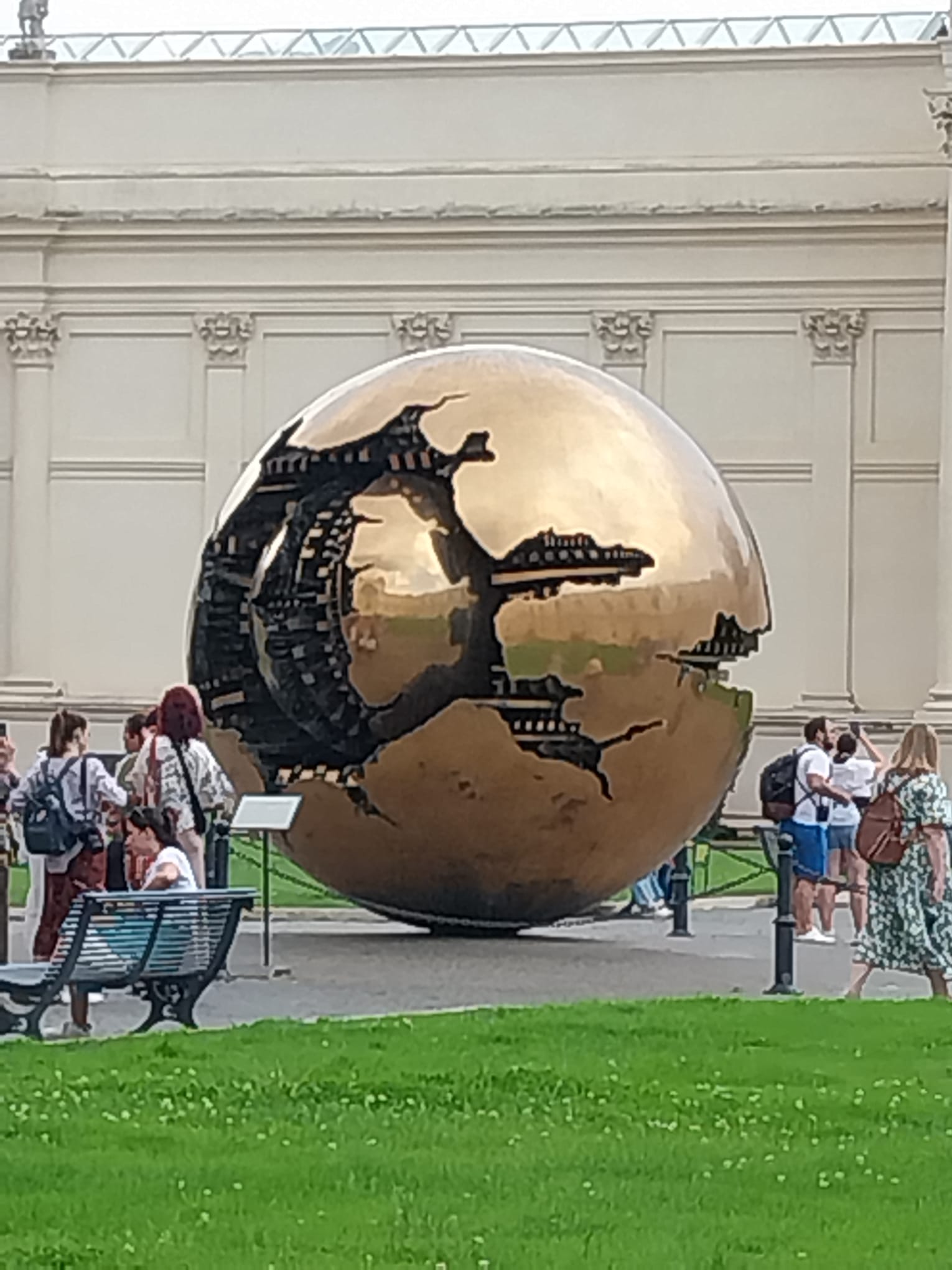 La grande sfera del globo terrestre, realizzata in bronzo dorato da Arnaldo Pomodoro, e posizionata nel giardino della Pigna, è molto piaciuta, tanto più che il globo ruota su se stesso.